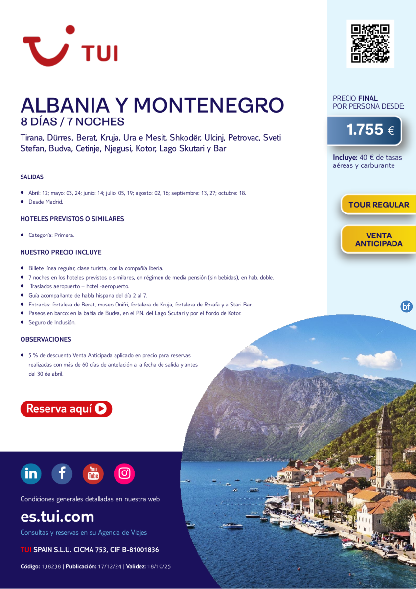 Albania y Montenegro. 8 días / 7 noches. Salidas desde MAD desde 1.755 €