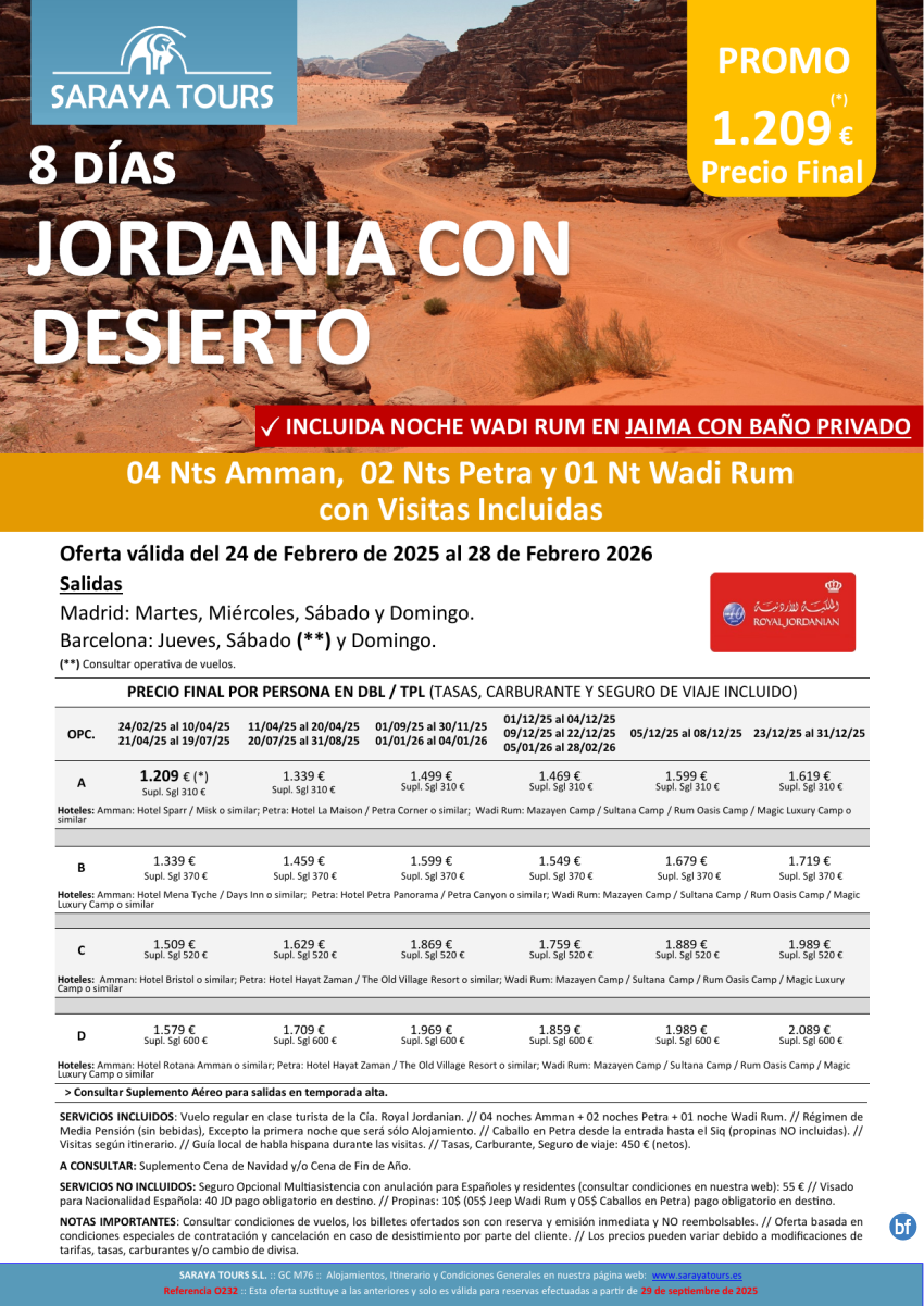 Jordania con Desierto 8 días: Amman, Petra y Wadi Rum con Visitas y Noche en Jaima Incluida hasta Feb27