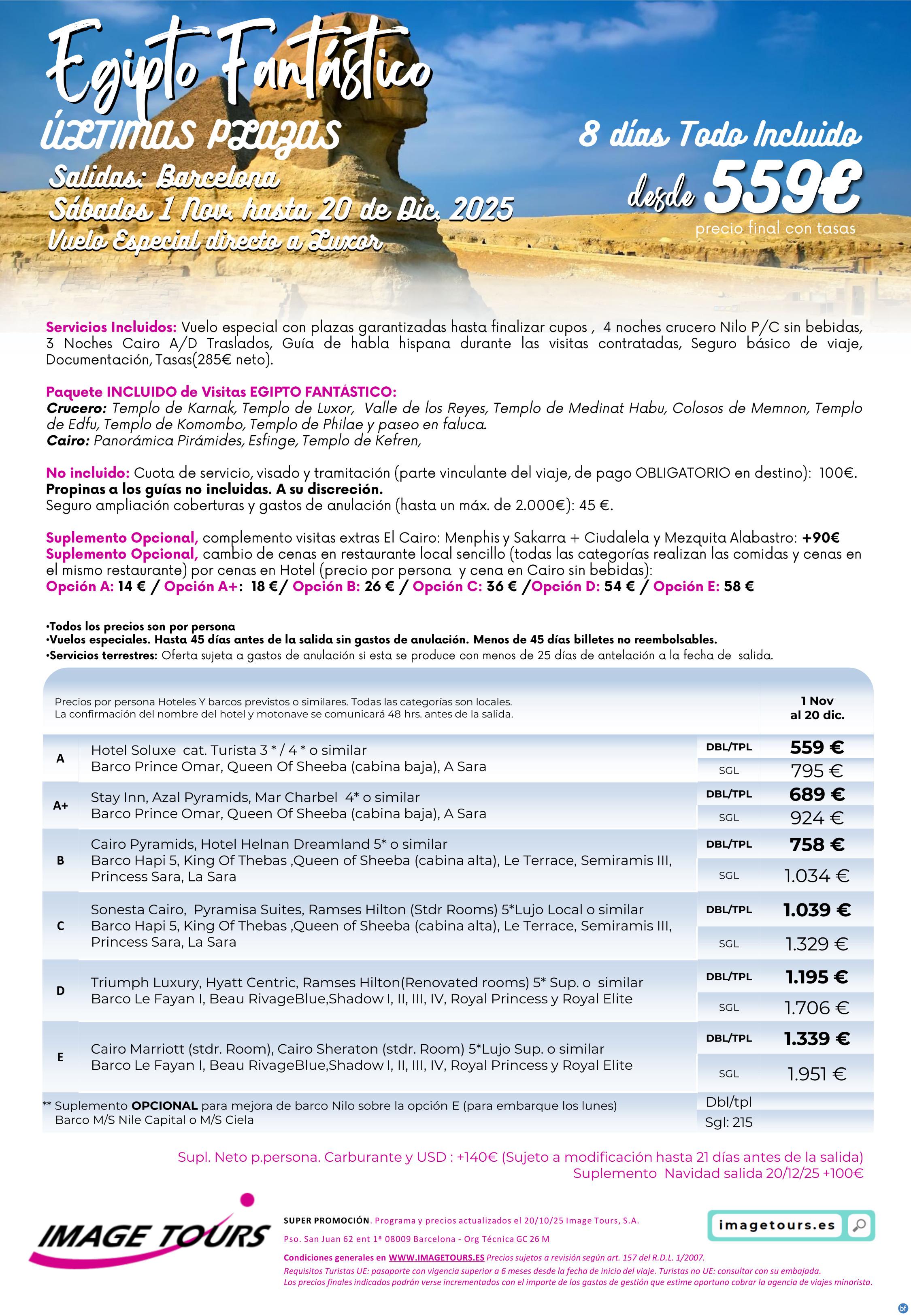 Egipto Fantástico ¡Últimas Plazas 1 de nov al 20 de diciembre! desde 559€